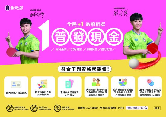「全民+1 政府相挺」普發現金訊息宣導
